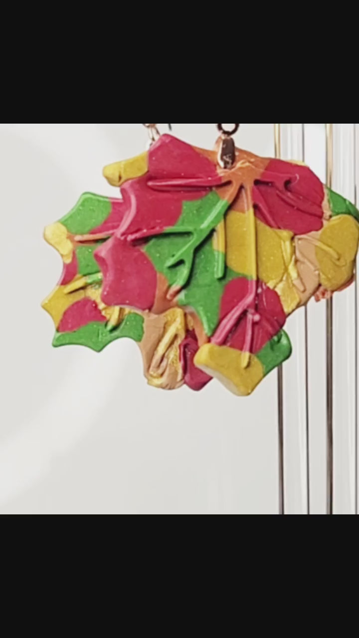 Our Autumn Collection of earrings features the wonderful fall colors of green, orange, tan, red, yellow, and gold. It features handmade textured elements. This is a polymer clay collection accented in gold. We hope you enjoy this collection as much as we do.