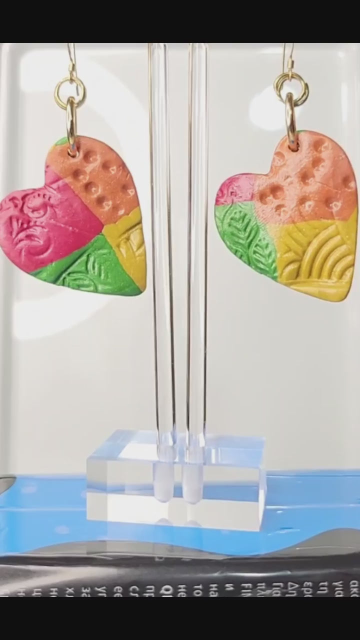 Our Autumn Collection of earrings features the wonderful fall colors of green, orange, tan, red, yellow, and gold. It features handmade textured elements. This is a polymer clay collection accented in gold. We hope you enjoy this collection as much as we do.